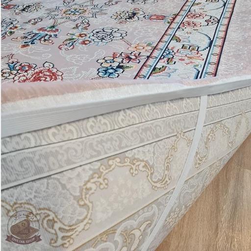 کشدوزی در 6 نقطه استراتژیک:** مهمترین ویژگی! ✅ دور تا دور کامل، وسط (کمر) و چهار گوشه روفرشی دارای کشدوزی قوی هستند.