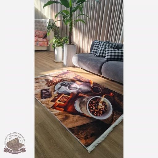 فرشینه مخمل طرح قهوه استُپ دار — کد 046 (پس کرایه)