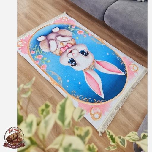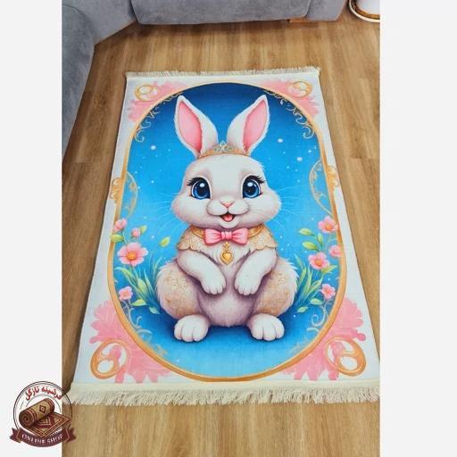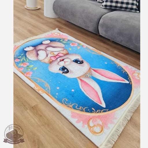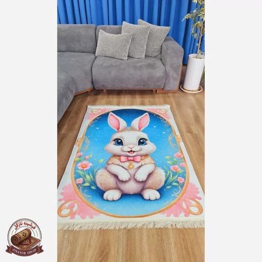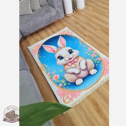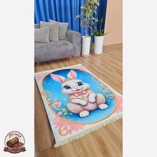 فرش اتاق کودک مخمل طرح خرگوش — استُپدار (ضد سُر) — پس کرایه