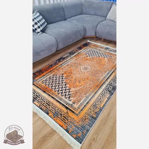 فرش وینتیج مخمل نارنجی مشکی h482 — استُپدار (ضد سُر) — پس کرایه